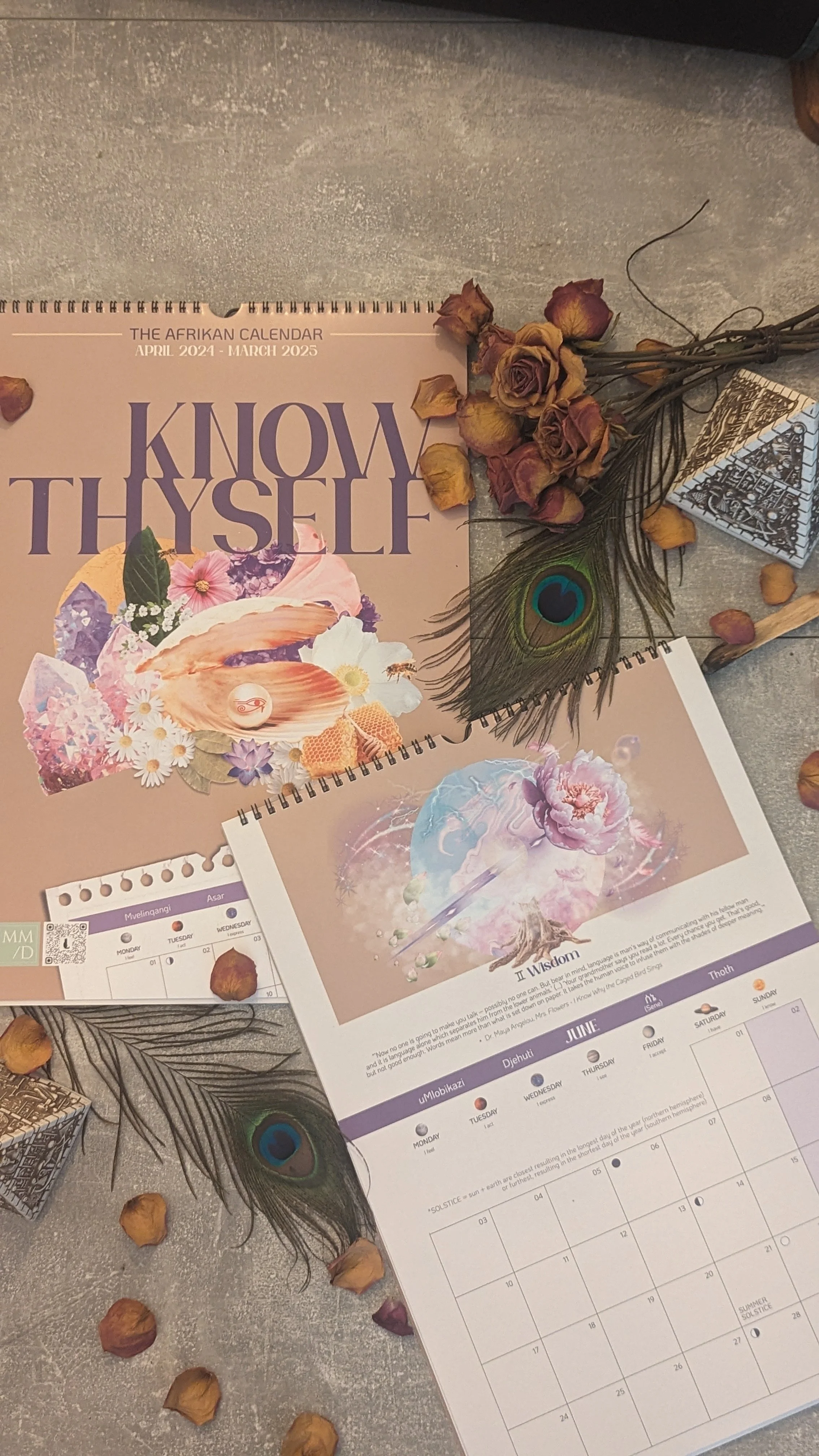 Der Know Thyself Calendar lädt dazu ein, sich vom starren Takt der Leistungsgesellschaft zu lösen und in die fließenden Rhythmen von Natur, Kultur und Identität einzutauchen. Er ist Kompass und Kunstwerk zugleich – ein Begleiter, der daran erinnert, dass wir zyklische Wesen sind, eingebunden in etwas Größeres als wir selbst.