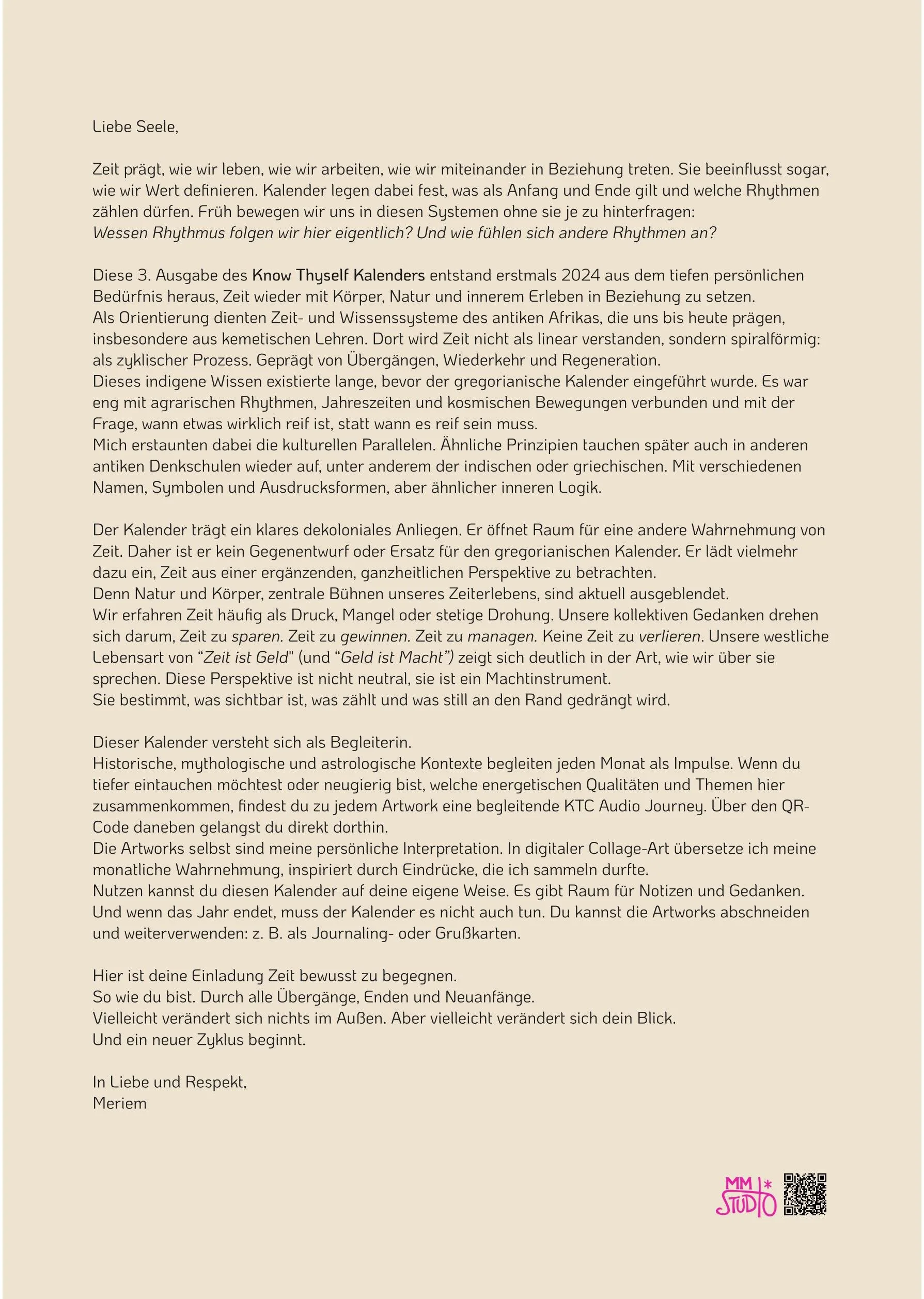 Der Know Thyself Kalender bleibt ein offenes Projekt. Getragen von Neugier, Forschung und der Frage, wie wir Zeit bewusster erleben können.